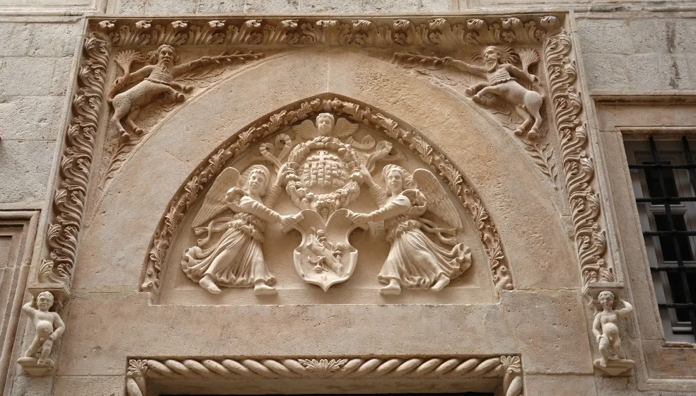For example the portals of the facade with their form and decoration carry all the markings of the late Gothic portals which are seen in the forties of the XV century on for example on the Rector's palace. For a symbolic layer of Humanism, characteristic is a motif of centaur on the main portal, and the leafs that frame it are a common motif in the work of Giorgio da Sebenico alias Juraj Dalmatinac, famous for the cathedrals of Sibenik and Ancona.